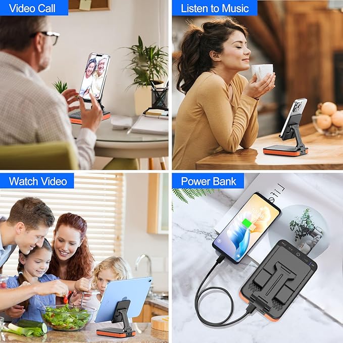 JTEMAN Bluetooth Speaker Phone Stand with Power Bank,Portable Foldable Charging Speaker Stand,Birthday Gifts for Men and Women Tech Gadgets