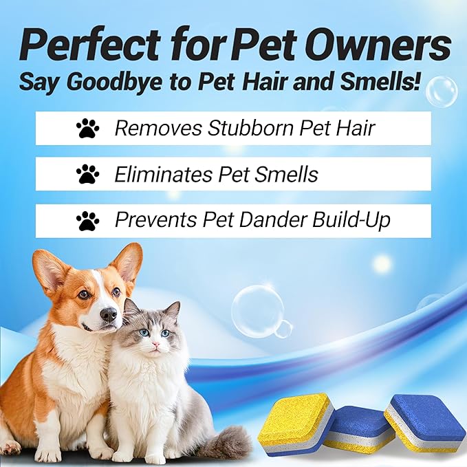 - Pets owners friendly formula: Our three-layer power formula removes stubborn pet hair, eliminates lingering smells, and prevents dander buildup, keeping your washing machine fresh, clean, and running smoothly – perfect for homes with furry friends.
