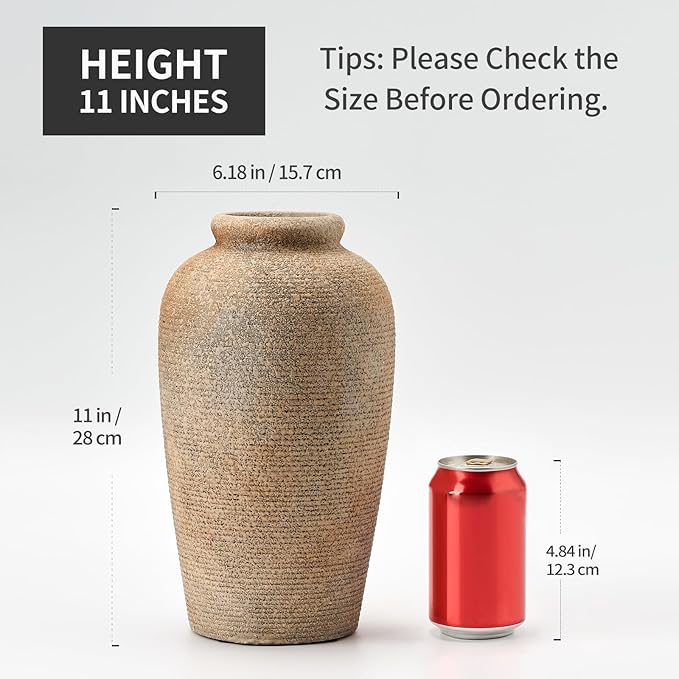 - 【Versatile Decor Piece】The terracotta vase measures 11" height and 6.18" width. Perfect for fresh or dried flowers. Effortlessly elevate the aesthetics of any room -be it your living room, kitchen, bedroom,bathroom, or office-with our product. It seamlessly blends with various decor styles,including boho, rustic,modern farmhouse,and cottagecore.For an extra pop of color, simply add your favorite faux or fresh flowers.