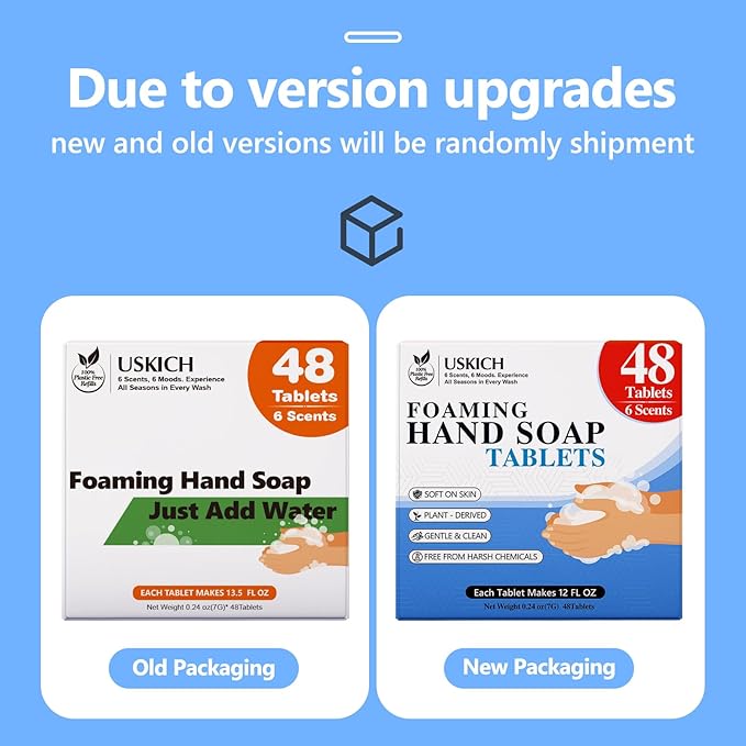 USKICH 48 Pack Foaming Hand Soap Tablet - Eco Friendly Cleaning Products,Variety Scents Refills Soap Tablets (48x8 Fl oz bottles)