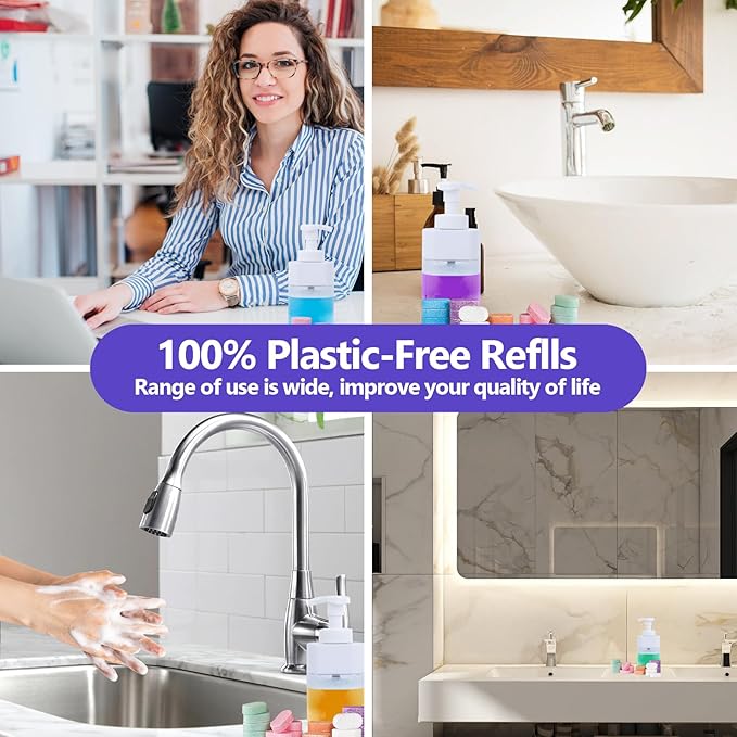- ✅Plastic-Free Foaming Hand Soap Tablets. Buy the bottle once, and refill forever with 100% plastic-free tablets that come in compostable paper-based packaging.