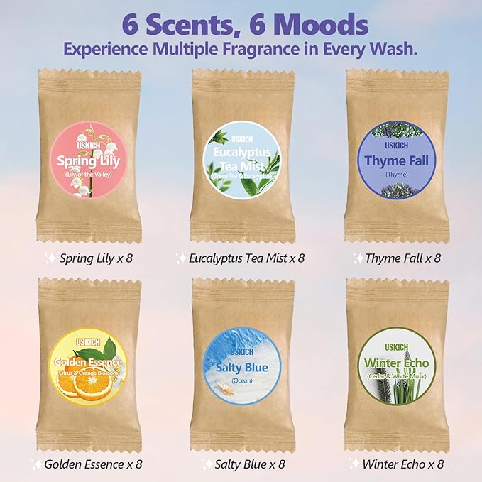 - ✅Multi-Fragrance & Multiple Experiences: Refill forever with hand wash tablets. The variety fragrance pack includes 8x Spring Lily,8x Eucalyptus Tea Mist, 8x Thyme Fall, 8x Winter Echo,8x Salty Blue,8x Golden Essence