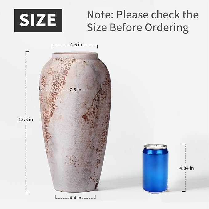 - 【Large Tall Vase】The white rustic vase measures 13.8" height and 7.5" width. Perfect addition to your home decor.Please check the size befor purchase.