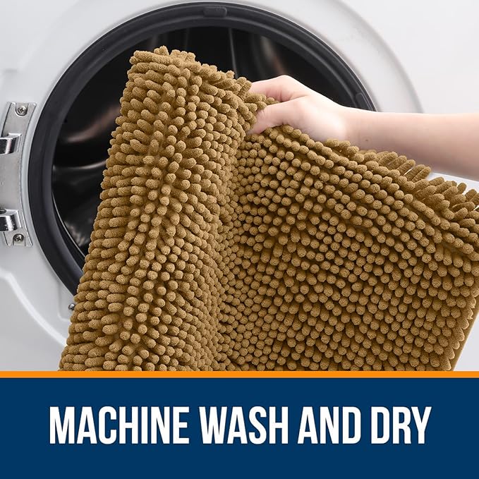 OLANLY Bathroom Rugs 30x20, Extra Soft Absorbent Chenille Bath Rugs, Rubber Backing Quick Dry, Machine Washable Bath Mats for Bathroom Floor, Tub and Shower, Home Decor Accessories, Ochre