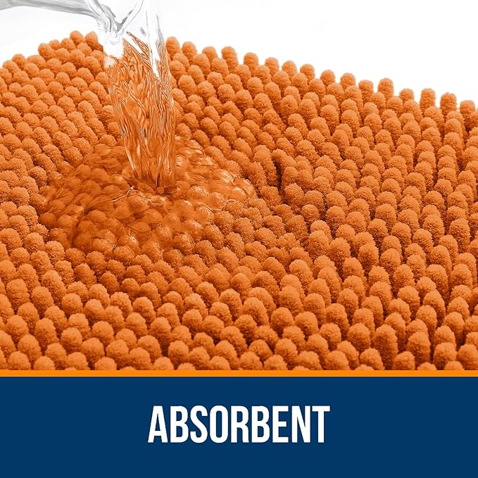 - Ultra Absorbent - Meet OLANLY's absorbent bath rug with dense chenille, keeping floors clean when you step out of the bath or shower. Instantly dry your feet on this shaggy rug, protecting your floor from water damage.