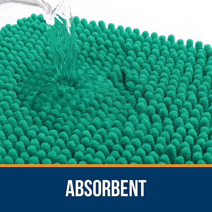 OLANLY Bathroom Rugs 44x24, Extra Soft Absorbent Chenille Bath Rugs, Rubber Backing Quick Dry, Machine Washable Bath Mats for Bathroom Floor, Tub and Shower, Home Decor Accessories, Emerald
