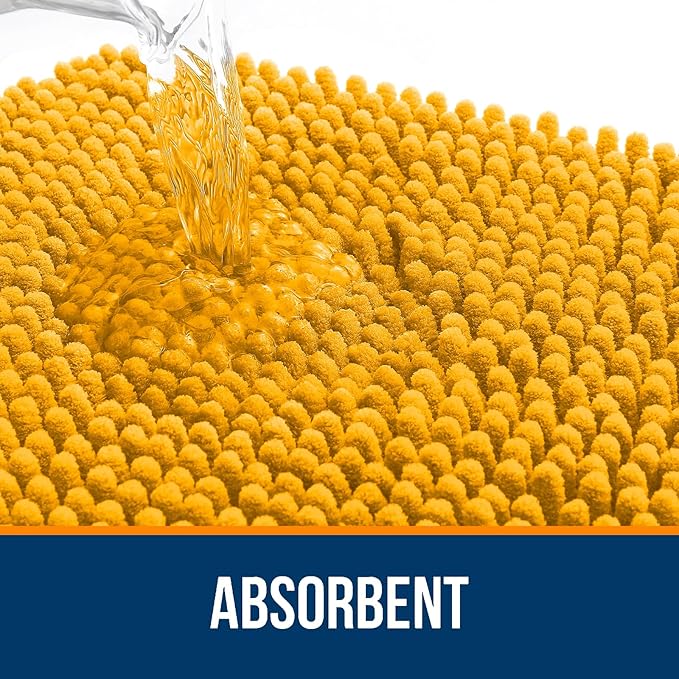 OLANLY Bathroom Rugs 24x16, Extra Soft Absorbent Chenille Bath Rugs, Rubber Backing Quick Dry, Machine Washable Bath Mats for Bathroom Floor, Tub and Shower, Home Decor Accessories, Golden Yellow
