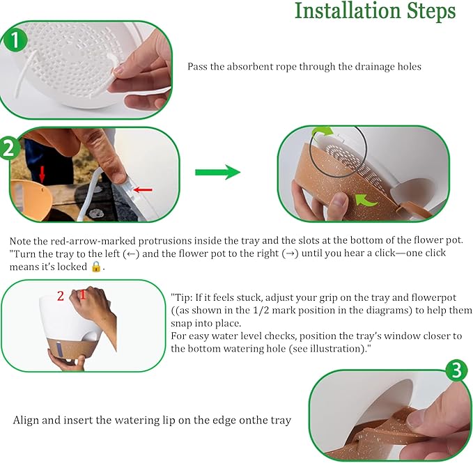 - 【Smart Self-Watering System】 Our hanging plant pots come with a REMOVABLE RESERVOIR TRAY that stores 7-10 day water supply. Absorbent cotton ropes automatically deliver moisture to soil when needed - ideal for vacations or busy lifestyles. Spend less time watering hanging baskets for indoor plants!