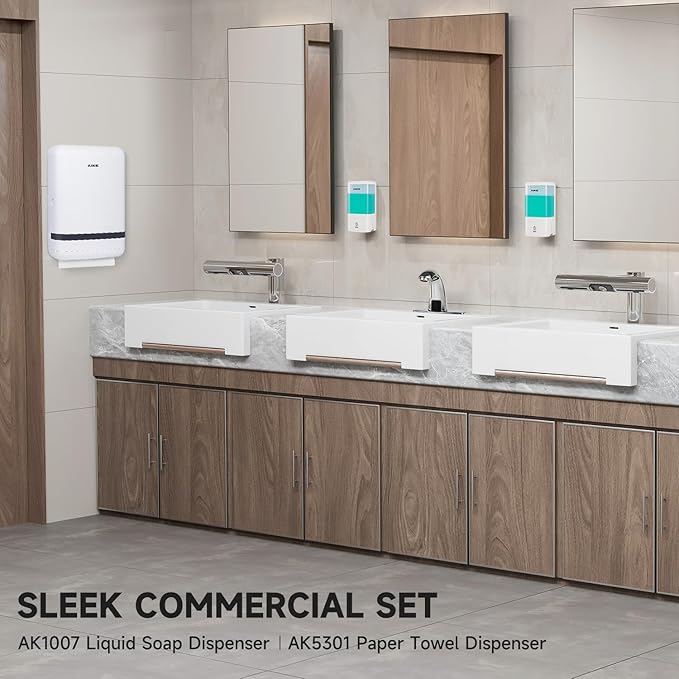 AIKE Wall Mount Liquid Soap Dispenser for Commercial Bathrooms,Offices,Restaurants 40 oz Large Capacity AK1007,White