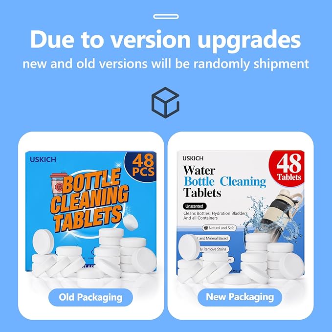 USKICH 48 Pack Water Bottle Cleaning Tablets,Water Bottle Cleaner Great for Stainless Steel, Thermos, Tumbler, Insulated and Reusable Water Bottles,Removes Stubborn Stains and Odors