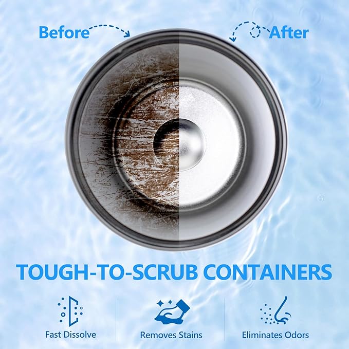 - Fresh And Deodorizing: Water bottle cleaner quickly dissolve to remove stubborn odors from bottles, containers, coffee mug, etc. Your drinks will not lose their deliciousness because of the cup odor.