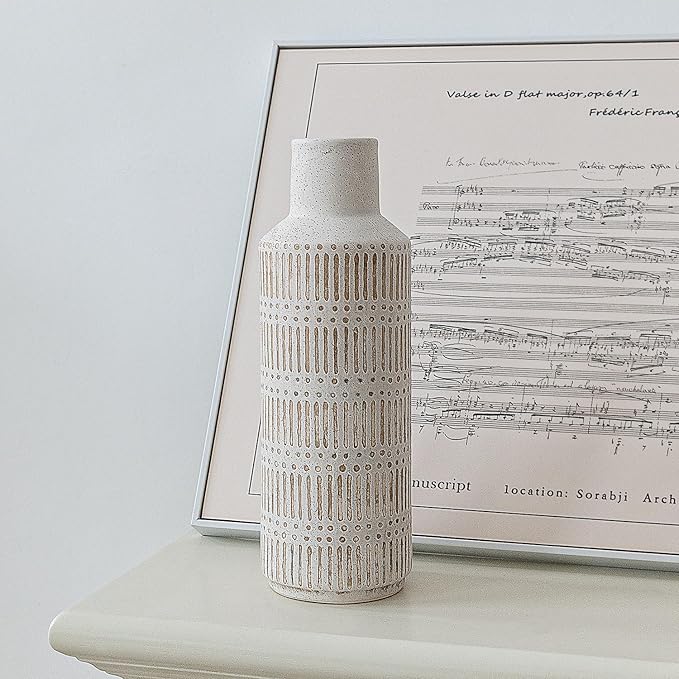 Rustic Ceramic Vase for Living Room Bedroom 11.02'' Antique White Flower Vase for Bouquet Fake Plant Home Decor Office Table Shelf Fireplace Centerpieces Retro Vintage Classic Modern