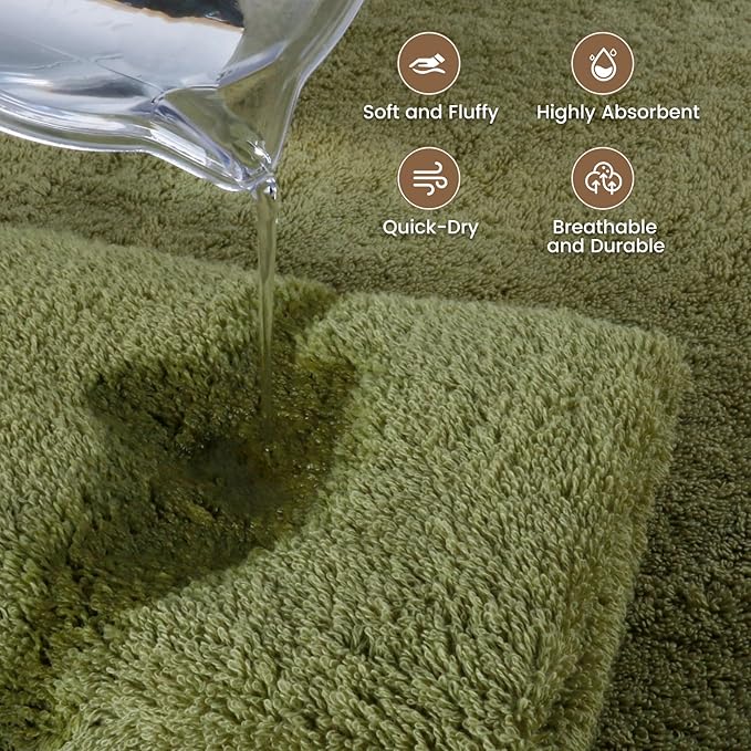 SEMAXE 4-Pack Luxury Bath Towels for Bathroom, 100% Cotton, Soft, Absorbent, and Quick-Drying, 55"x27", Green, Perfect for Hotels, Gyms, and Spas