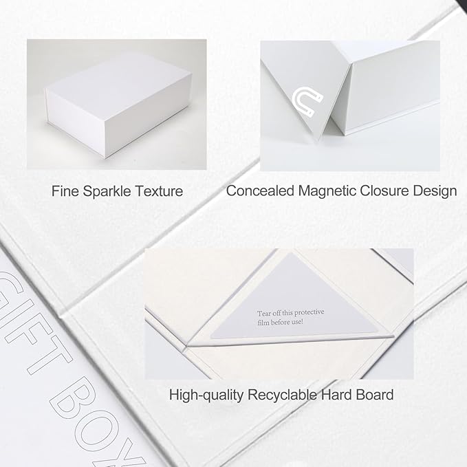 - Easy to Assemble: These white gift boxes with lids have a foldable design for easy storage, transportation, and saving space, tear off the white triangle sticker to easily assemble and glue the box.