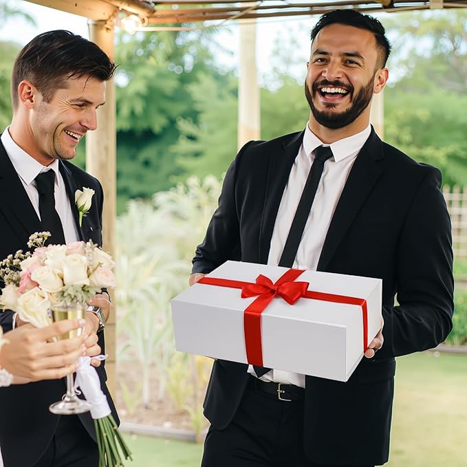 Ditwis 4 Pack 13.8x9x4.3 Inches Gift Boxes with Magnetic Closure Lids, White Magnetic Box for Wedding, Groomsmen Bridesmaid Proposal, Birthdays, Mother's Day