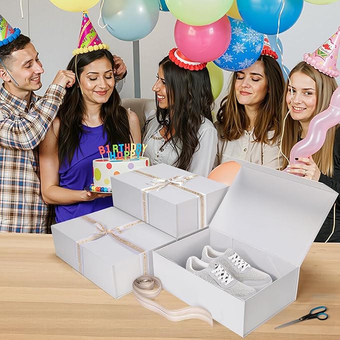 - Great Size: The 4 Pack 13.8x9x4.3 inches gift boxes with lids can hold gifts such as chocolates, cosmetics, skincare, perfumes, clothing accessories or handmade products, etc. Not just for gift-giving but also as a more lovely storage option for various office and personal items.