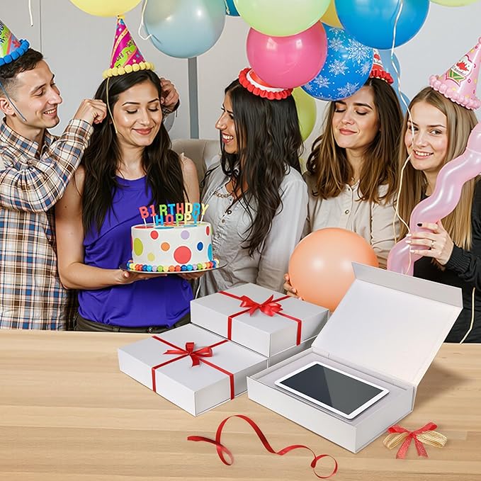 - Great Size: The 4 Pack 11.5x8.5x2.3 inches gift boxes with lids can hold gifts such as chocolates, cosmetics, skincare, perfumes, clothing accessories or handmade products, etc. Not just for gift-giving but also as a more lovely storage option for various office and personal items.