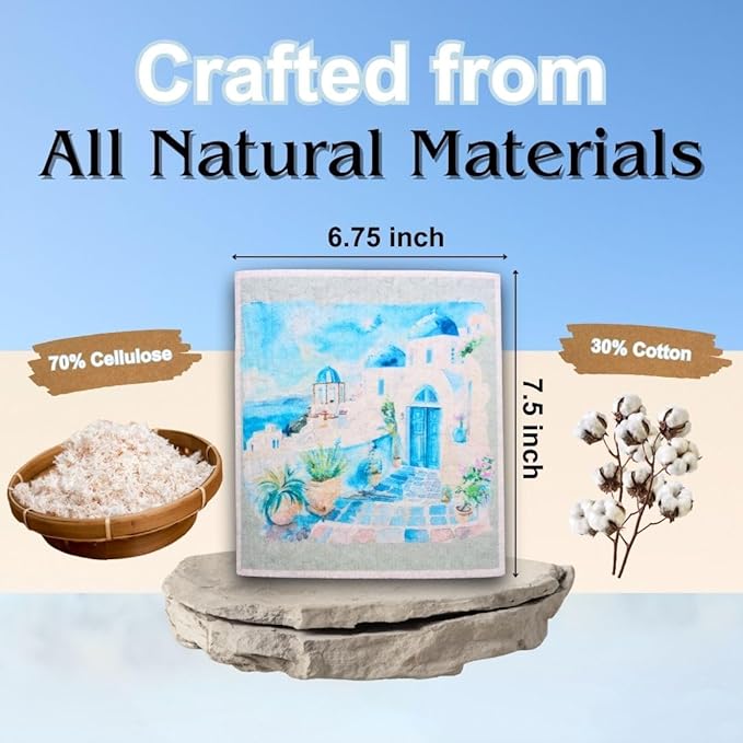 - ECO FRIENDLY: Our dish rags are crafted from cellulose and cotton, making them biodegradable and eco-friendly. Perfect for environmentally conscious households, these swedish dishcloths for kitchen provide a sustainable alternative to disposable paper towels. Reduce paper waste by choosing to use a beautiful Swedish dishcloth made of compostable material.