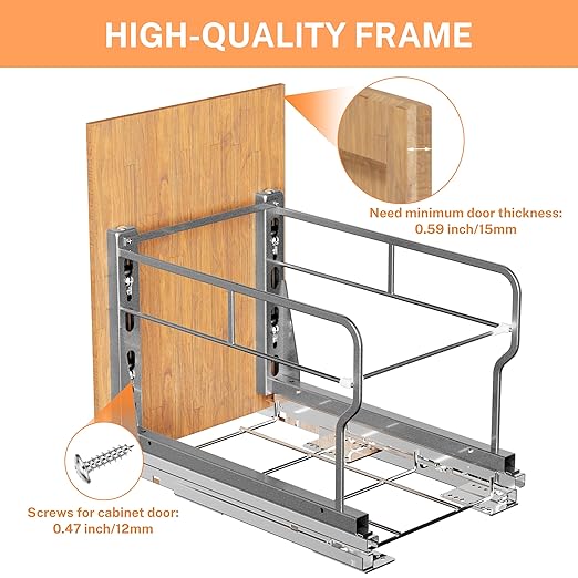 - Premiun Material: Trash cabinet pull out is made of high-quality carbon steel with a powder-coated surface for durability and rust resistance, allowing you to clean it easily with a cloth. The under sink trash can pull out has an enhanced weight capacity, capable of withstanding up to 120 pounds, so there's no need to worry about bending the slides.