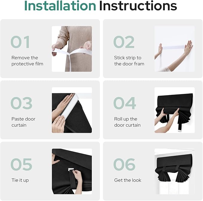 - 🌸EASY HANGING: The package includes 1 door curtain panel and 1 adhesive strip. It can be easily installed without any tools or curtain rods. Just follow our instructions picture to install, put the sticky strip on the glass, and join together with the sticking place on the door curtain panels firmly.