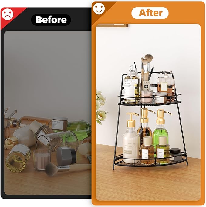 - 【Adjustable Height Shelf】The top tier of the bathroom countertop organizer can be adjusted to different heights, accommodating various bathroom essentials and offering greater versatility.
