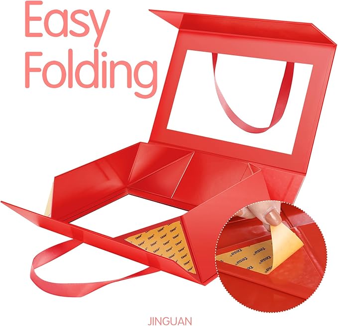 Large Red Clear Gift Box, 13.5x9x4.1 Inches, With Window & Handle, Magnetic Closure, Suitable for Various Occasions