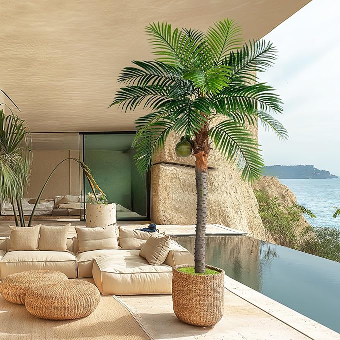 - DURABLE AND LONG-LASTING :Made from high-quality silk materials, this large faux coconut palm tree is designed to withstand outdoor elements, ensuring it remains beautiful for years without fading or wilting.