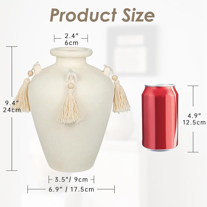 - PREMIUM CERAMIC BOHO VASE. Each ceramic flower vase is handcrafted from high-quality clay and kiln-fired for strength and durability. The terracotta-style finish gives rustic vase an aged, authentic texture that blends perfectly with boho, farmhouse, and vintage home décor. Our vintage flower vase is more than a floral vase - it's a piece of art that tells a story of beauty.