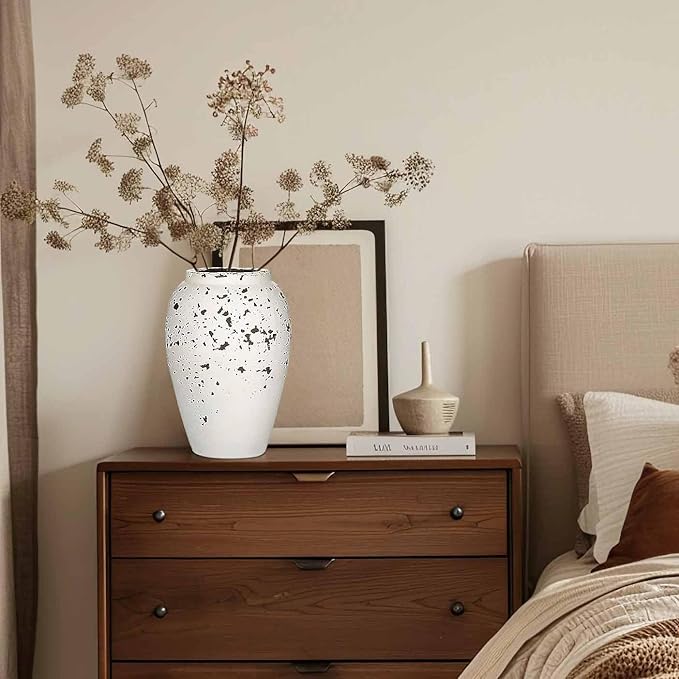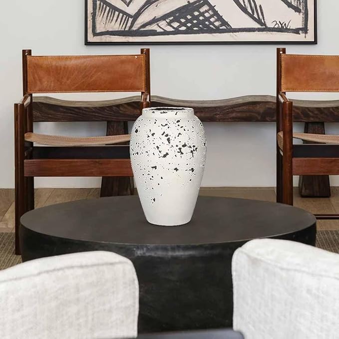 Handcrafted Flower Vase, 10.5" Tall Terracotta Vases, Vintage Rustic Ceramic Vase Décor, Wide Mouth, Matte Finish for Home Office Resto Café Décor