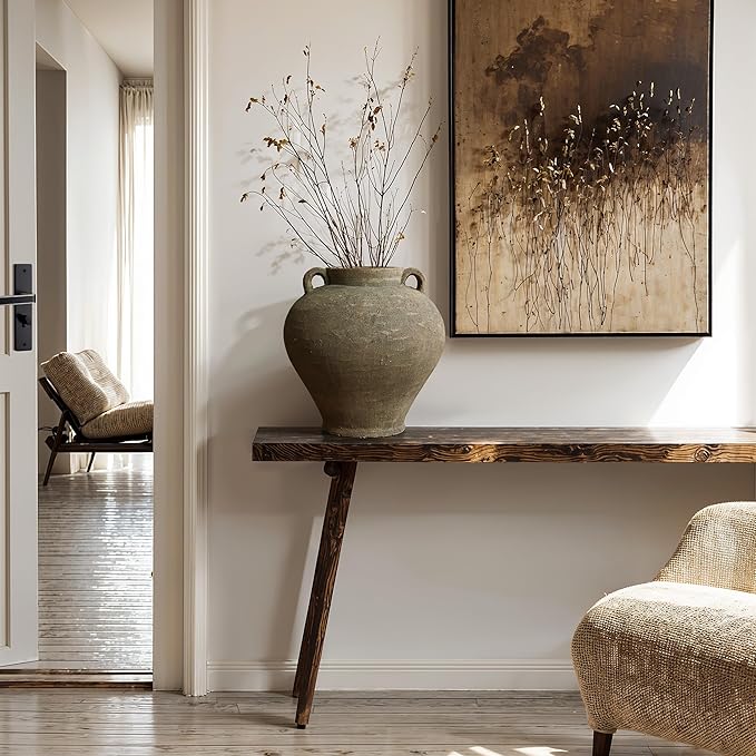 - Handcrafted 100% Terracotta Vase: Our ceramic vase, meticulously crafted from high-quality terracotta, features a rustic finish that exudes an antique charm. Standing at 14 inches tall, it's an impressive centerpiece for farmhouse or vintage home decor, enhancing the character of any living room or as a table decoration.
