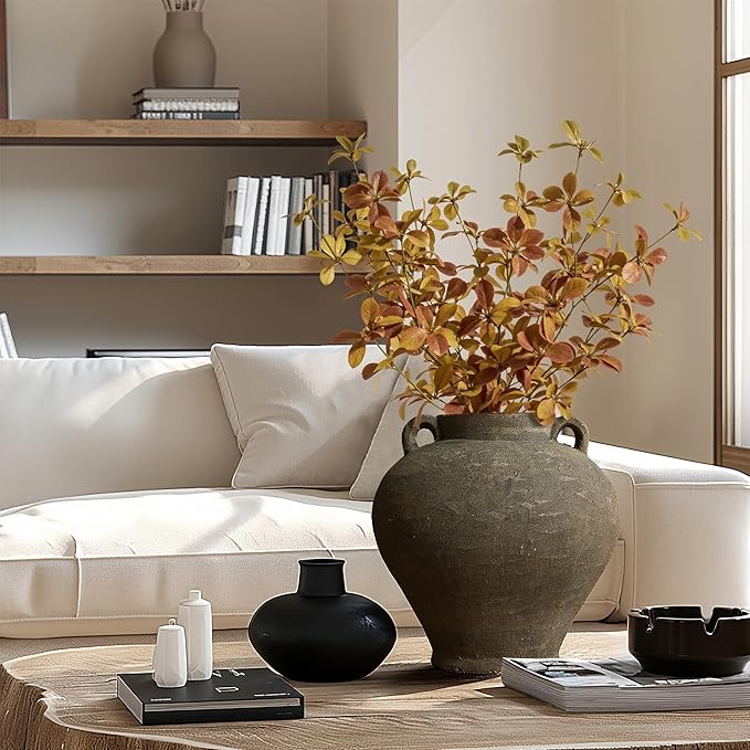 - Elegant and Portable Design: The elegant design of this rustic vase, with its flat base and distinctive two-eared shape, makes it easy to place and move around your home. It adds a touch of sophistication to any space, whether used as a floor vase in your living room, dining room, or office.