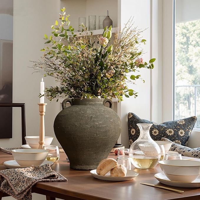 - Measurements and Versatility: This 14 inch tall terracotta vase is designed to be a statement piece in your home decor. Its size is perfect for displaying a variety of botanicals, and while it's not watertight, it offers versatility for decorative purposes, making it suitable for indoor spaces like living rooms, bedrooms, or offices.