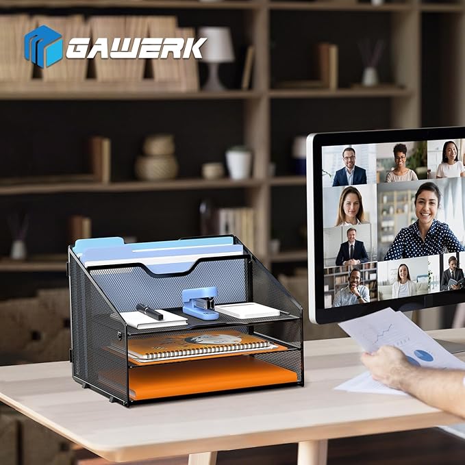 - Unique Design: 3 horizontal trays for storing letters and other office essentials, and rear 2 upright area for file folders.