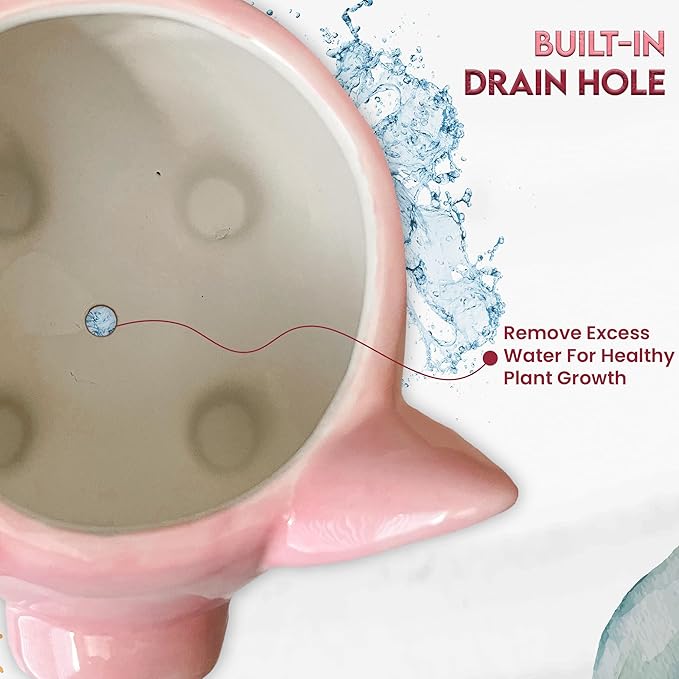 - ✅ UNIQUE HAND-PAINTED DESIGN – Crafted from high-quality ceramic with vibrant hand-painted details, this pig succulent planter is both durable and decorative. Thick walls add resilience, rounded edges ensure safe handling, and it's top-rack dishwasher safe for easy cleaning.