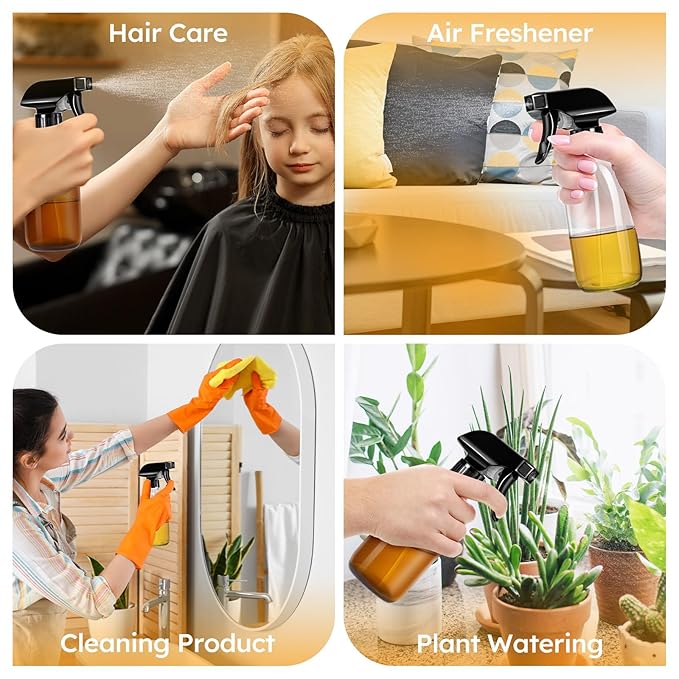 - For Multi-funtion : REFILL with whatever you mix at home. Unlimited uses include plant water-spraying, hair moisturizing spray, natural air freshener for home or pets and homemade skin and beauty recipes, DIY Essential Oils Blend, Glass Spray Bottle for Cleaning solutions