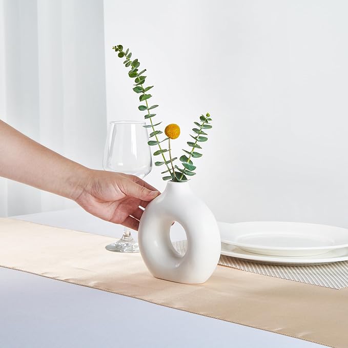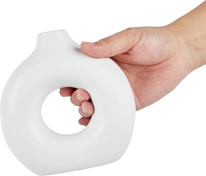 - EYE-CATCHING LOOK: This ceramic vase features a donut-inspired design, representing a stylish artistic statement. Its sophisticated shape commands attention as the centerpiece in any room.