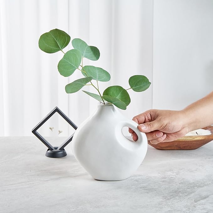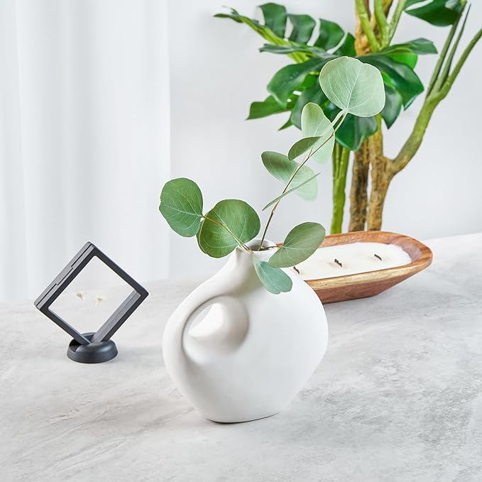 - ELEGANT WHITE FINISH: With a white finish, this decorative ceramic vase effortlessly enhances any interior aesthetic. Use it as a standalone centerpiece or for displaying blooms!