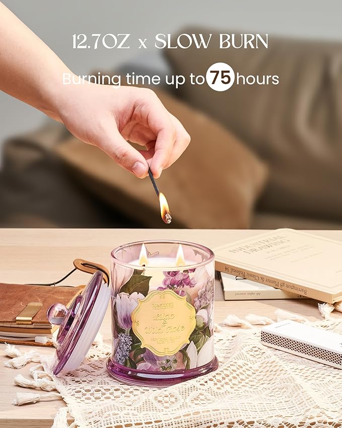M&SENSE Lilac Rose Scented Candles, Natural Plant-Based Soy Candles Non Toxic, Relaxing Aromatherapy Candles for Bath Spa, 2 Wick 12.7oz Large Jar Candle 75 Hour Long Lasting Burn