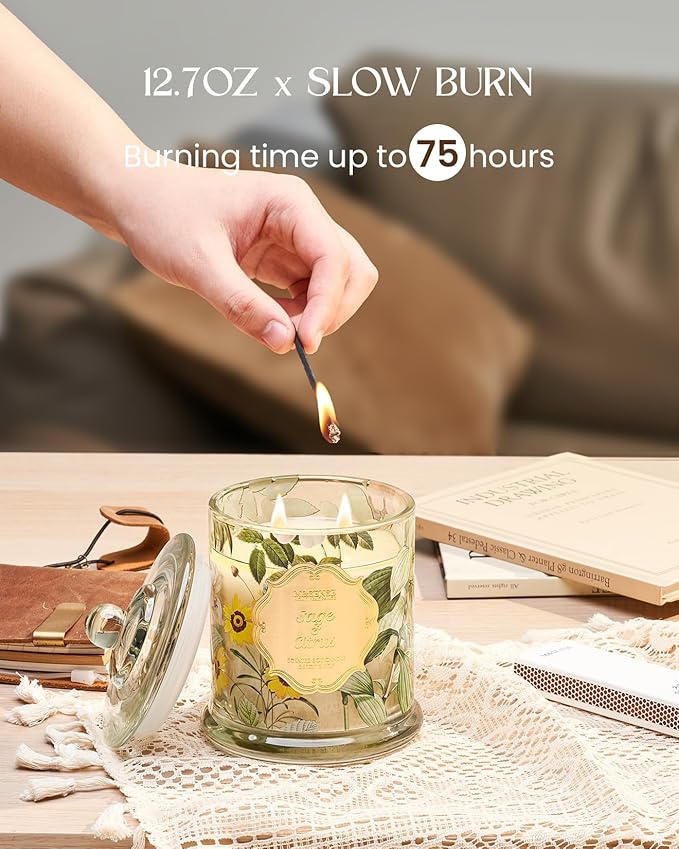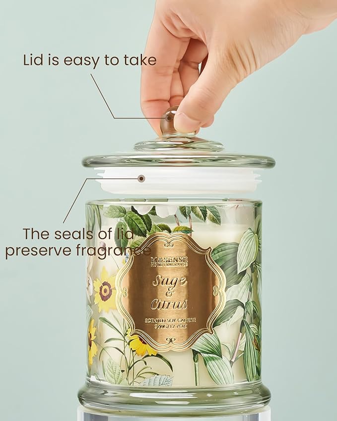 M&SENSE Sage Citrus Scented Candles, Natural Organic Soy Candle 12.7oz 75H Long Lasting Slow Burning, 2 Wick Large Jar Candle Stress Relief, Fall Winter Thanksgiving Christmas Housewarming Gift