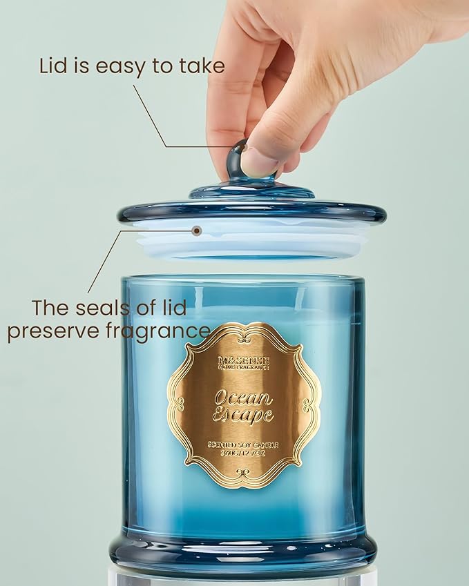 M&SENSE Summer Ocean Scented Candles for Home, Organic Soy Candles Non Toxic, Relaxing Aromatherapy Candles for Bath Spa, 2 Wick 12.7oz Large Candle 75 Hour Long Lasting Slow Burning