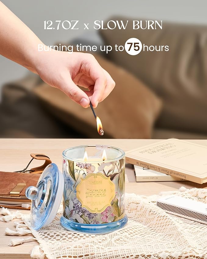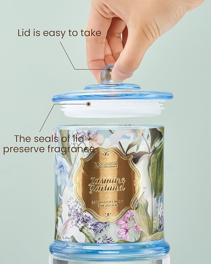 M&SENSE Jasmine Scented Candles, Organic Soy Candle 12.7oz 75 Hour Long Lasting Slow Burning, Highly Scented Good Smelling Aromatherapy Candle, Aaesthetic Candle Gift for Women