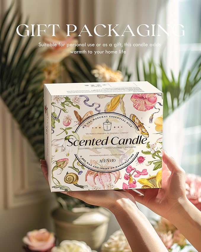 - Perfect for Gifting: No extra wrapping needed. Presented in an elegant gift box with beautifully crafted glass jar candles and gold foil labels, boasting an array of delightful scents that make this gift truly special.
