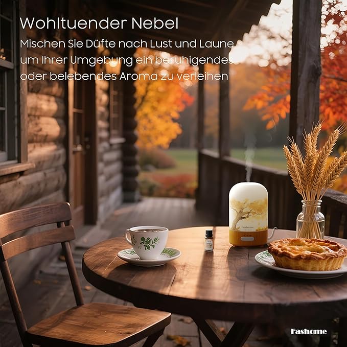 Glass Essential Oil Diffuser with Frankincense Oil, 100ml Ultrasonic Aromatherapy Humidifier, 6 in 1 Scent Vaporizer with Timer and Auto-Off (Autumn-Frankincense)
