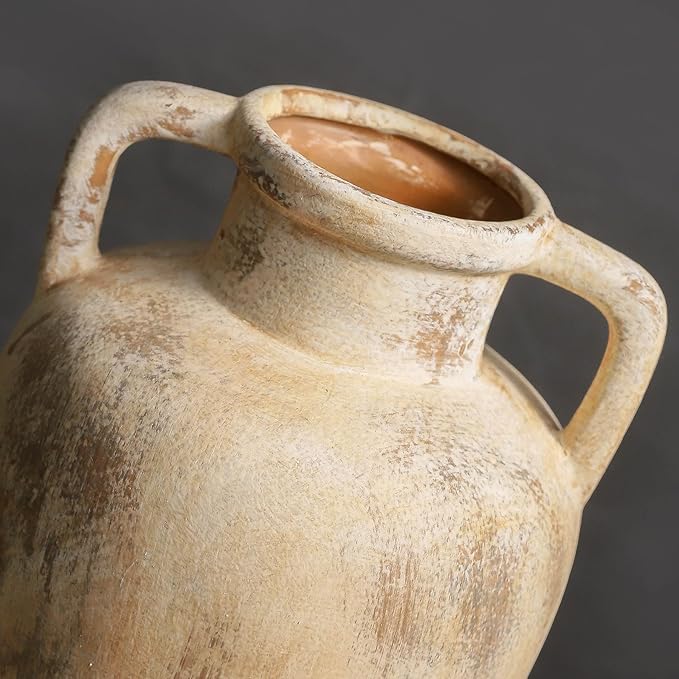 Ceramic Rustic Vase for Flower, 8.85 inch Tall Terracotta Christmas Vases with 2 Handles, Farmhouse Vase for Home Decor, Living Room Shelf Decor, Enterway, Table, Lyeec