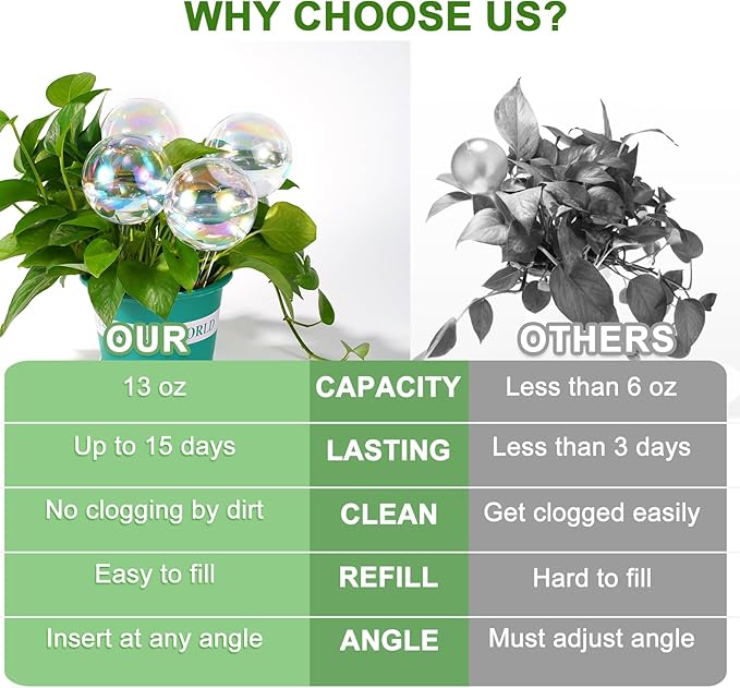 - Perfect Gift Choice: This set of glass watering globes is an ideal gift for plant lovers, frequent travelers, or busy professionals. These self water globes ensure plants are properly watered, even when you're not around. The included plant watering devices are perfect for anyone who needs an easy and effective way to maintain plant health.