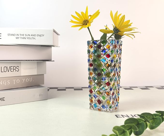 - Hand Painted Colorful Checkered Crystal Diamond Vase