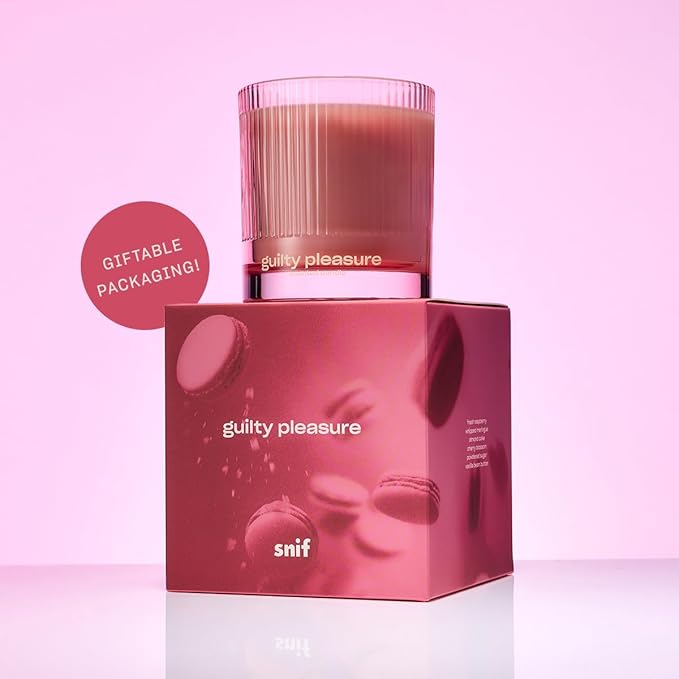 Guilty Pleasure Luxury Scented Candle by Snif, Valentine's Day, Warm and Calming, 50+ Hours, 100% Cotton Fiber Wicks, Soy Wax Blend, Non-Toxic, Vegan, 8.5 oz
