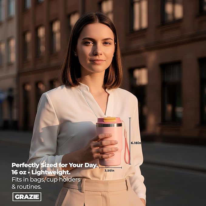 - SLIM PROFILE FITS EASILY IN BAGS AND CUP HOLDERS Designed for real life, this 16oz insulated tumbler fits most car cup holders, backpack sleeves, and gym bags. Lightweight yet durable, it’s perfect for people who are always on the move parents in car lines, athletes headed to practice, or campers packing light. Its sleek, modern silhouette offers style and function in one dependable thermos. Makes a great gift for birthdays, holidays, or coworkers.