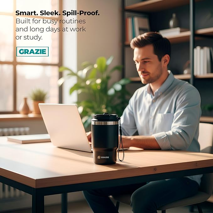 - VERSATILE FOR COFFEE, TEA, SMOOTHIES OR WATER ON THE GO From hot morning lattes to iced water during a hike, this stainless steel travel mug does it all. Use it as your insulated coffee cup, smoothie tumbler, or cold water thermos. The wide mouth makes it easy to add ice or clean, while the leakproof lid seals in flavor and temperature. It's the go-to portable drinkware for outdoor adventures, sports moms, busy dads, or students juggling school and sports.