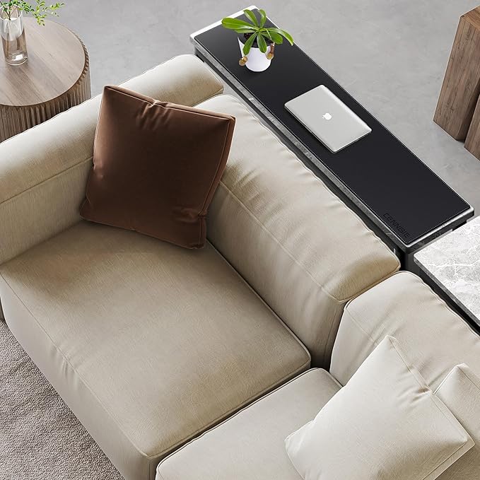 - Premium PU Leather - Stylish & Easy to Clean: Crafted from soft, durable, and stylish PU leather, this black console table mat is easy to clean—just wipe with a damp cloth. Its sleek design complements sofa tables in the living room, console tables behind the couch, and other furniture like sofas and beds, enhancing your sofa table decor, console table decor, and entryway table decor.